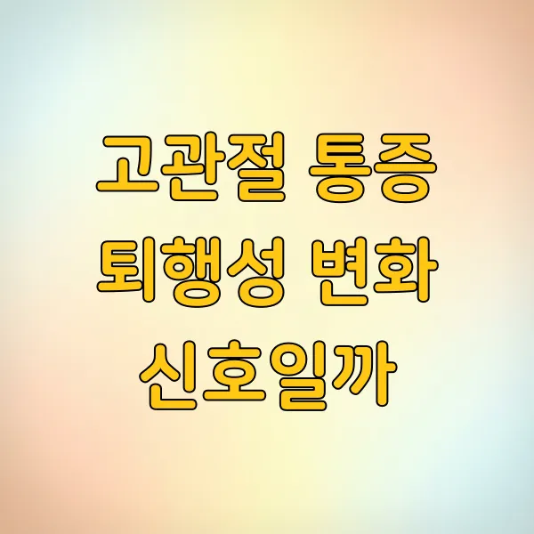 병원에 가기 전까지는 '설마 퇴행성 관절염일까?' 하는 생각이 계속 머릿속을 맴돌았어요. 무릎은 자주 아팠는데, 고관절까지 아프니 불안감이 커지더라고요. 연골이 닳아 없어지는 퇴행성 변화 가 시작된 건 아닐까 하는 걱정이 앞섰어요. 고관절 통증은 그 진행 속도도 빠르다고 하니 더욱 조심해야 했죠.