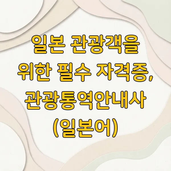 한국에서 일본인 관광객을 대상으로 활동하고 싶다면, 관광통역안내사 자격증(일본어) 취득을 고려해볼 수 있어요. 이 자격증은 한국 문화와 역사, 관광지에 대한 깊이 있는 지식을 바탕으로 일본어 관광객들에게 전문적인 안내 서비스를 제공할 수 있다는 것을 증명해줘요.